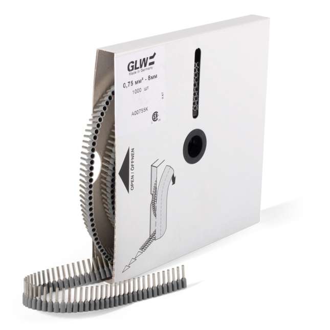 61594 | Лента наконечников НШВИ 0.75-8 GLW для электрич. аппаратов (уп.1000шт) КВТ
