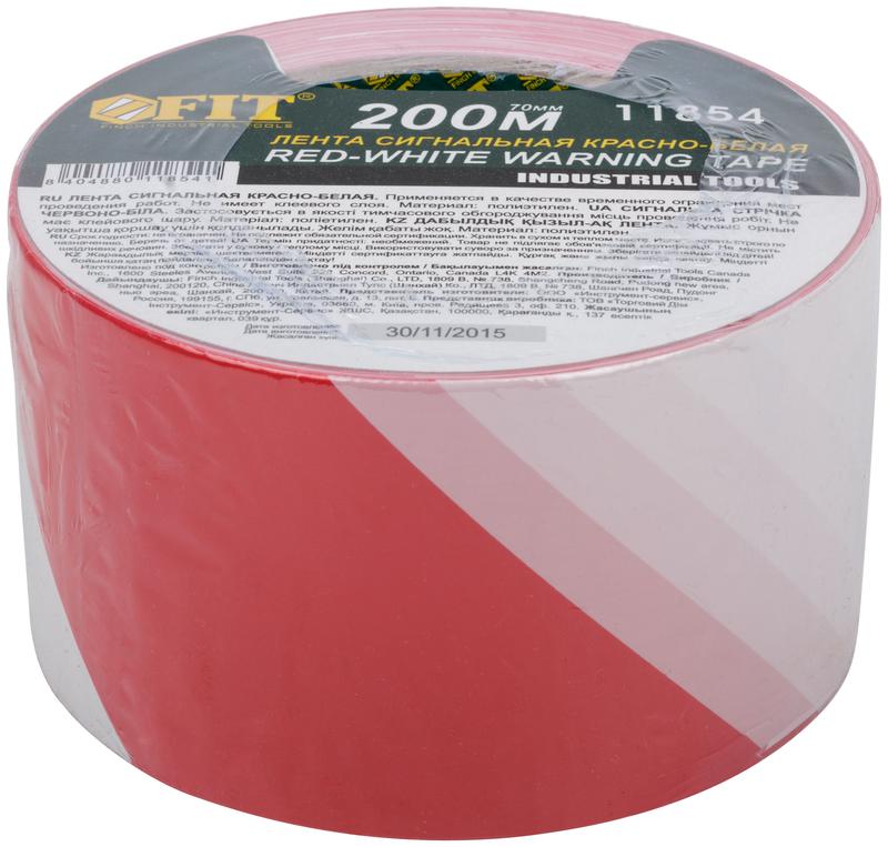11854 | Лента сигнальная 70ммх200м красн.-бел. FIT