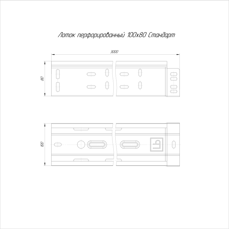 PR16.0003 | Лоток перфорированный 100х80 L3000 (0.7мм) Стандарт Промрукав