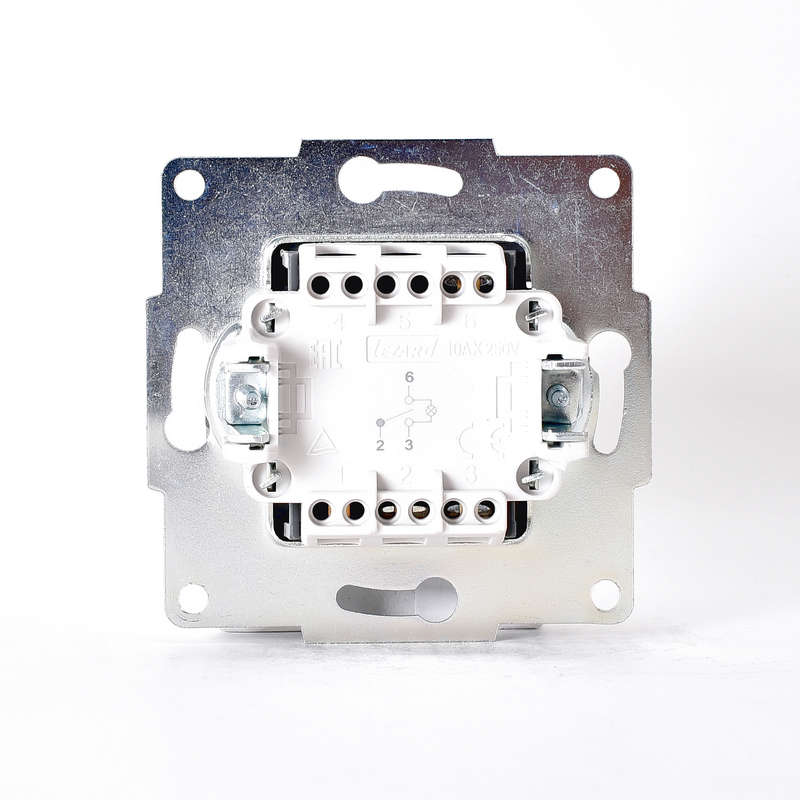 707-4388-114 | Переключатель проходной 1-кл. 1п СП Karina 10А IP20 с подсветкой матов. механизм серебр. LEZARD