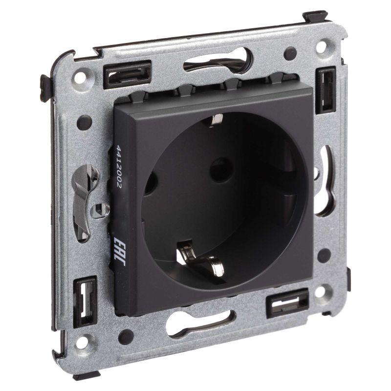 4412003 | Розетка 1-м СП 2мод. Avanti "Черный матовый" 16А 2P+E защ. шторки механизм черн. DKC