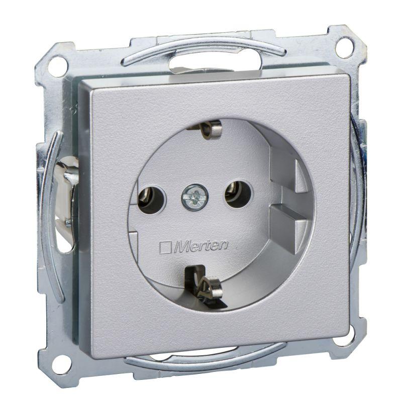 Розетка 1-м СП Merten 16А IP20 с заземл. без защ. шторок QF SM механизм алюм. SchE MTN2301-0460