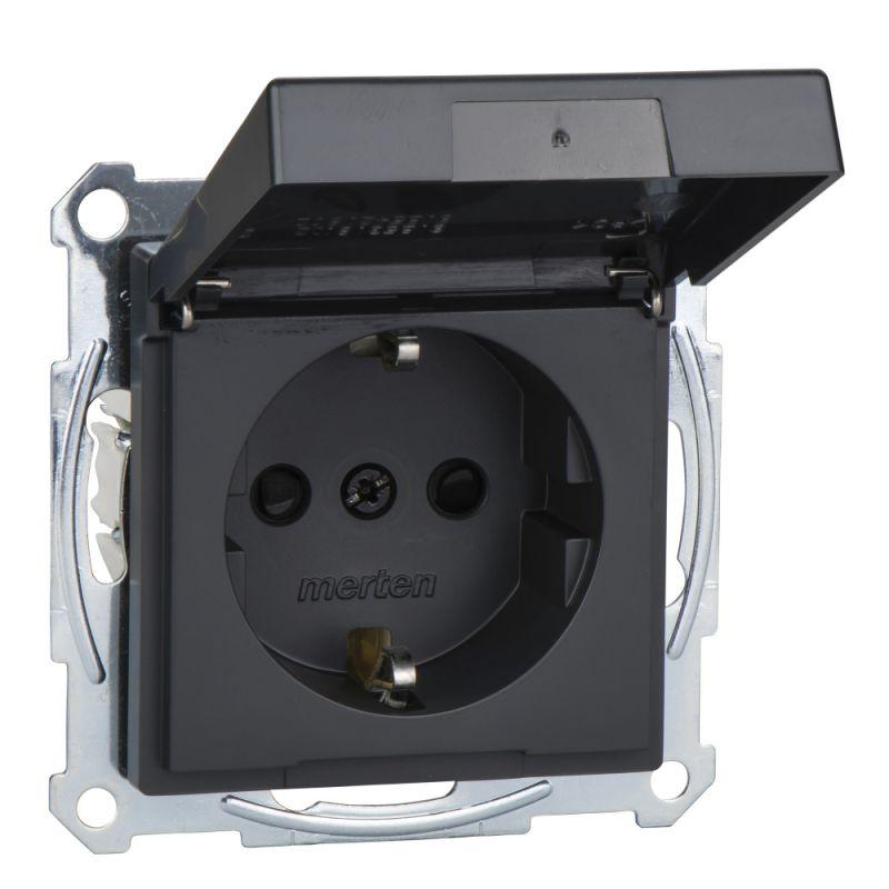 Розетка 1-м СП Merten 16А IP20 с заземл. защ. шторки с крышкой QF SM механизм антрацит SchE MTN2310-0414