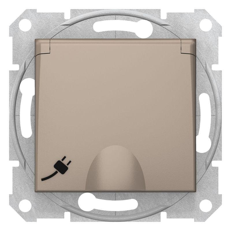 Механизм розетки 1-м СП Sedna 16А IP20 с заземл. безвинт. контакты защ. шторки с крышкой титан SchE SDN3100468