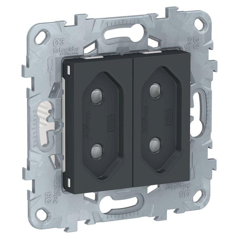 Механизм розетки 2-м 2мод. Unica New 10А IP21 без заземл. защ. шторки винт. клеммы антрацит SchE NU503154