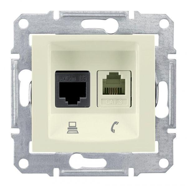 SDN5200147 | Механизм розетки комп. + телеф. 1-м СП Sedna RJ11 + RJ45 беж. SchE