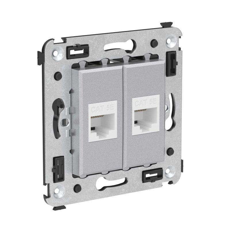 4404664 | Розетка компьютерная 2-м СП Avanti "Закаленная сталь" RJ45 кат.5E без шторок механизм DKC