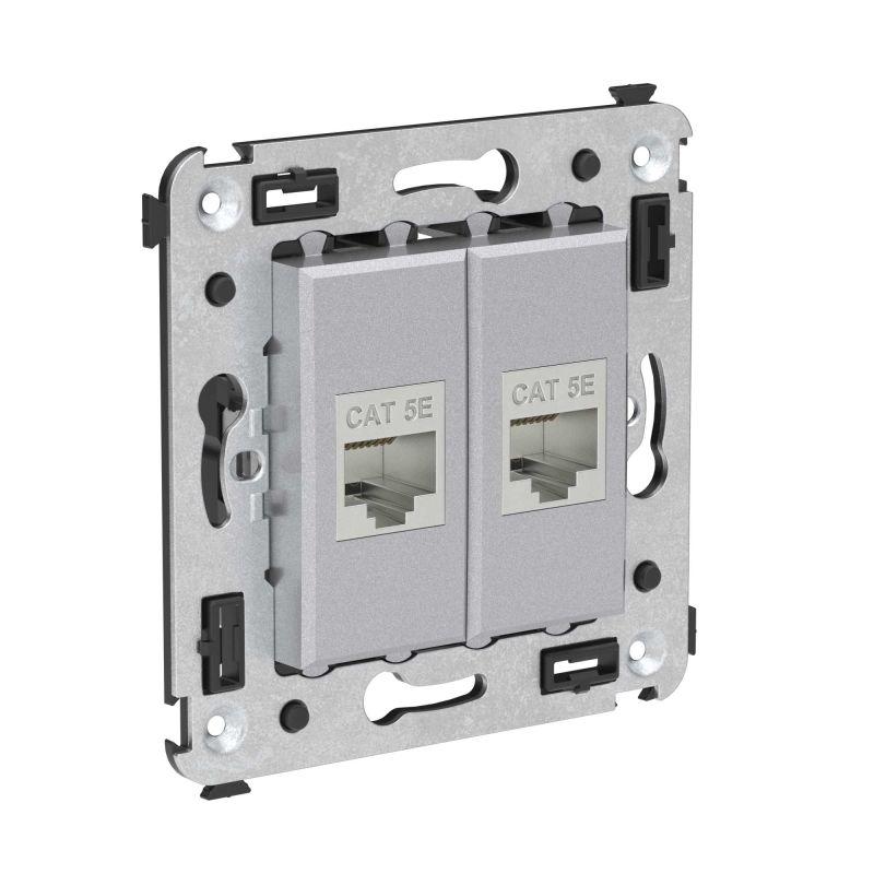 4404764 | Розетка компьютерная 2-м СП Avanti "Закаленная сталь" RJ45 кат.5E без шторок экранир. механизм DKC