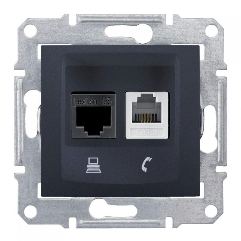 SDN5200170 | Механизм розетки телеф. + комп. СП Sedna графит SchE