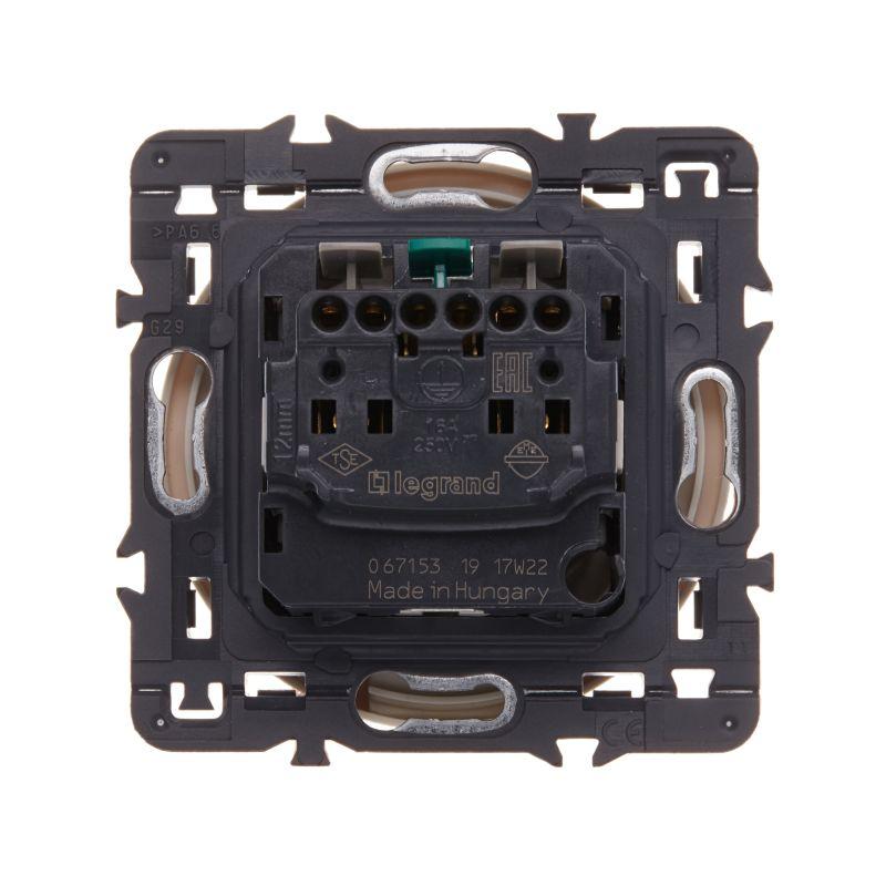 Механизм розетки 1-м СП 2мод. Celiane 16А IP20 2P+E защ. шторки немецк. стандарт безвинт. клеммы черн. Leg 067153