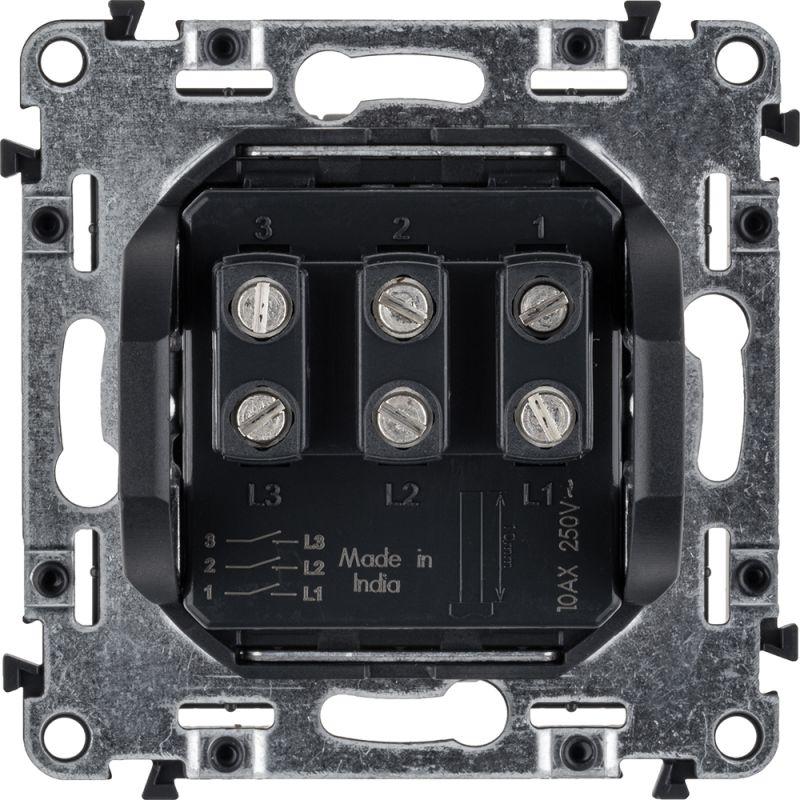 752403 | Механизм выключателя 3-кл. СП Valena Life 10А IP20 250В 10AX с лиц. панелью винт. зажимы бел. Leg