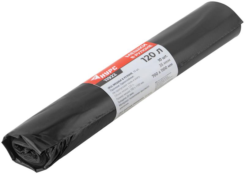 11922 | Мешок для строительного мусора ПВД прочные 120л 700х1100мм толщина 35мкм (уп.10шт) КУРС