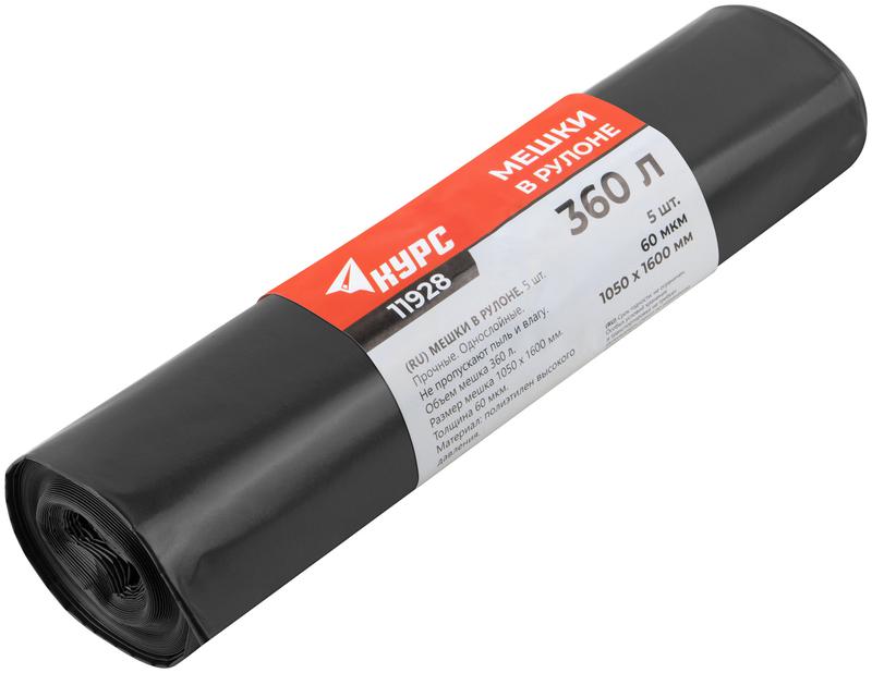 11928 | Мешок для строительного мусора ПВД прочные 360л 1050х1600мм толщина 60мкм (уп.5шт) КУРС