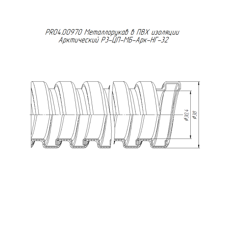 PR04.00970 | Металлорукав в ПВХ изоляции арктический Р3-ЦП-МБ-Арк-НГ-32 (уп.25м) Промрукав