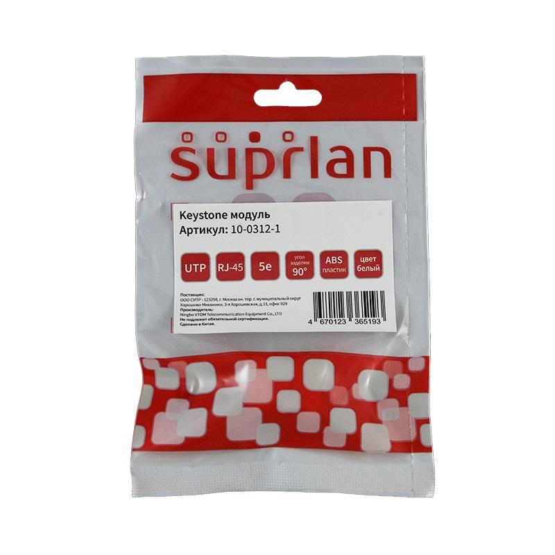 Модуль розеточный Keystone Jack 8P8C RJ-45 UTP кат.5E заделка без инструмента бел. (DIY) SUPRLAN 10-0312-1
