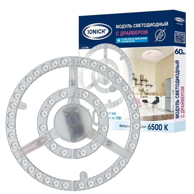 Модуль светодиодный высокой мощности для декоративных светильников 60Вт 6000лм 230В 6500К d270х25мм IP20 IONICH 2083