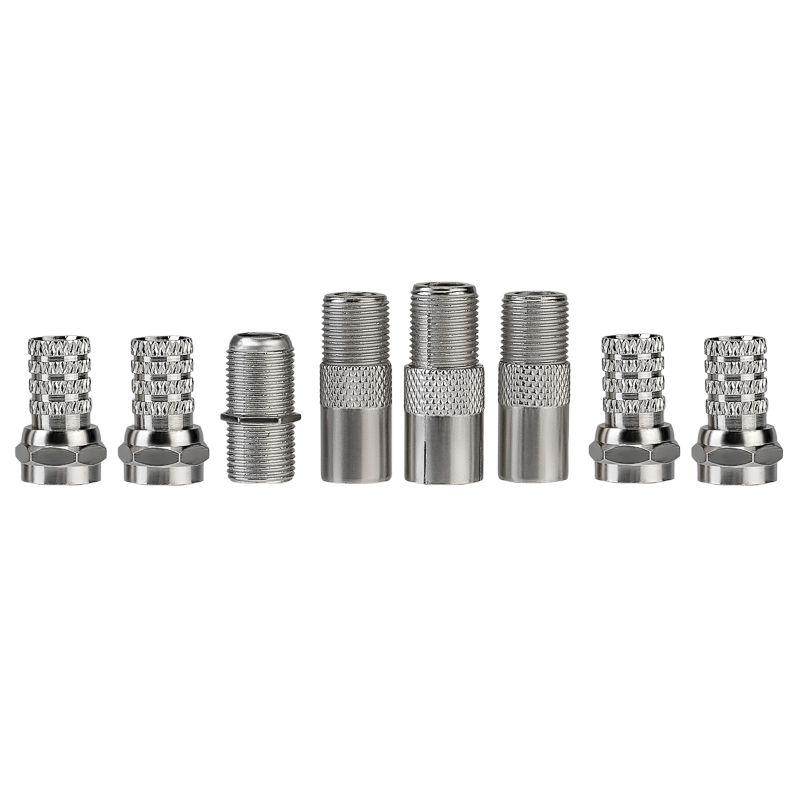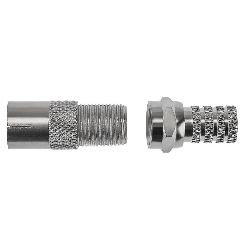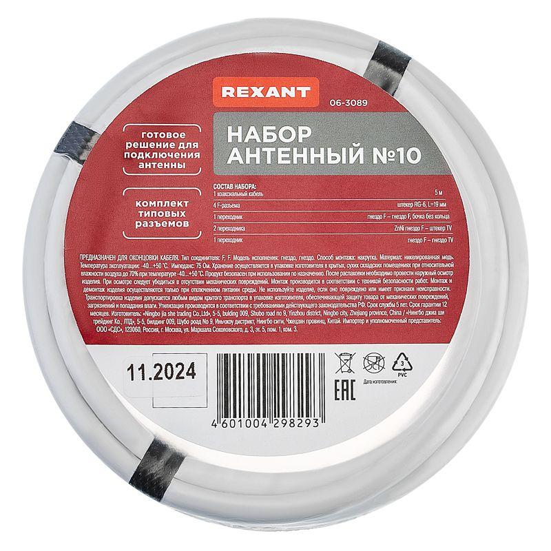 Набор антенный №10 кабель RG-6U 5м штекер F (4шт) бочка (1шт) переходник гнездо F - шт TV (2шт) переходник гнездо F - гнездо TV (1шт) Rexant 06-3089