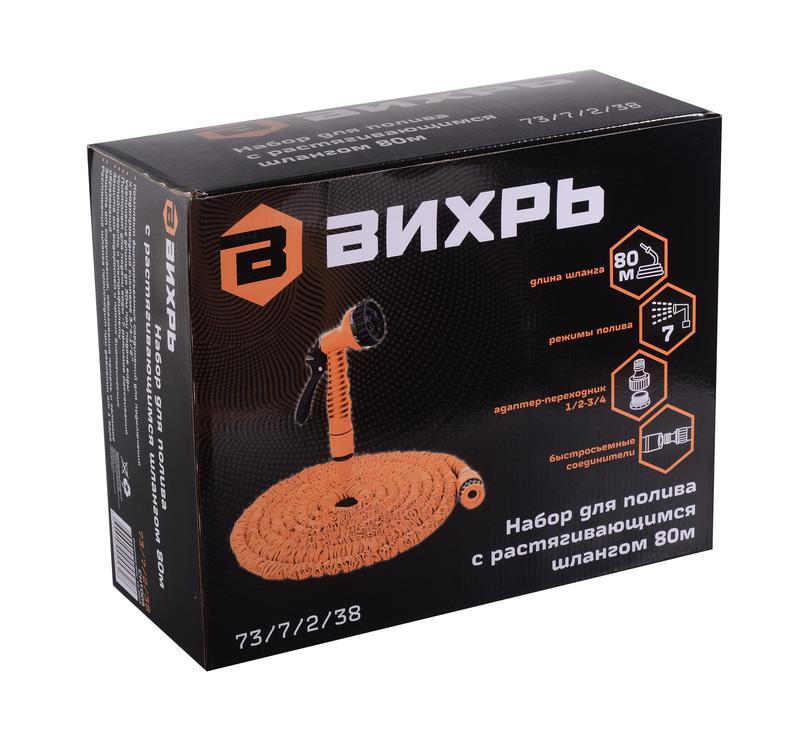 73/7/2/38 | Набор для полива с растягивающимся шлангом 80м Вихрь