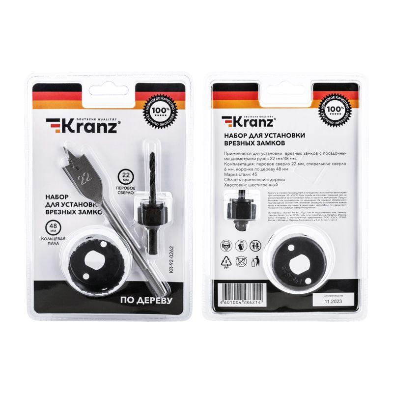 Набор для установки врезных замков 22мм/48мм (перовое сверло/кольцевая пила) Kranz KR-92-0262