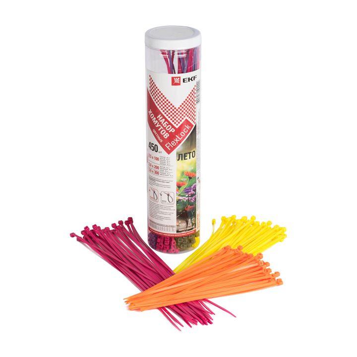 Набор хомутов цветных "Лето" 2.5х100; 3.6х200; 3.6х300 FlexLock (уп.450шт) PROxima EKF plc-fl-set-su