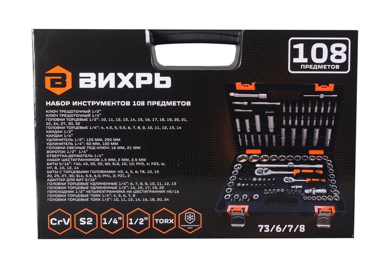 73/6/7/8 | Набор инструментов 1/2дюйм 1/4дюйм CrV в кейсе 108 предмета Вихрь