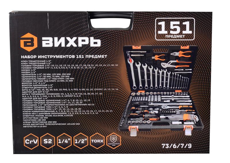 73/6/7/9 | Набор инструментов 1/2дюйм 1/4дюйм CrV в кейсе 151 предмет Вихрь