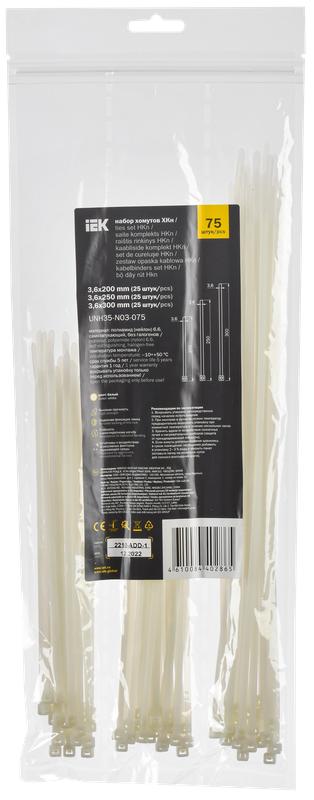 UNH35-N03-075 | Набор хомутов 3.6х200; 3.6х250; 3.6х300 бел. (уп.75шт) IEK