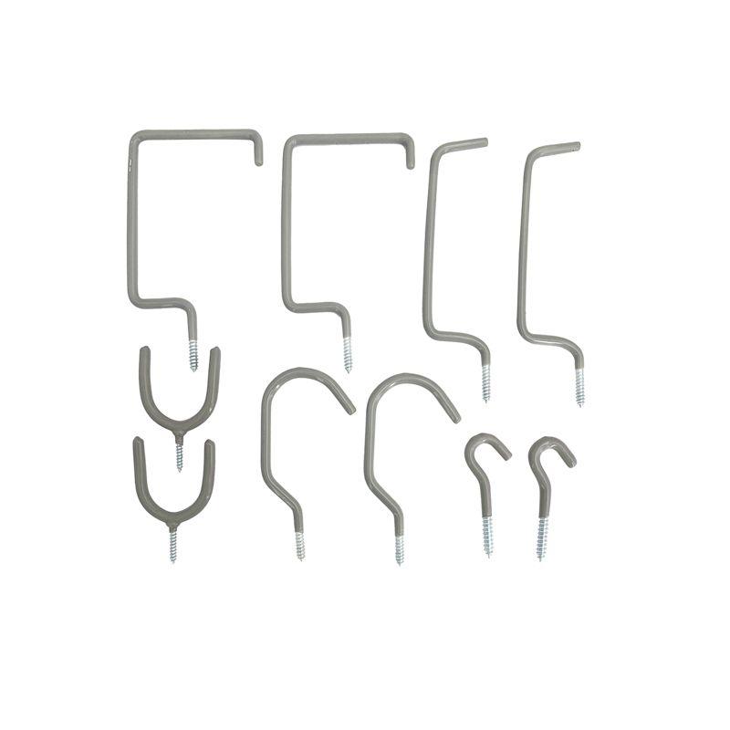Крюки изготовлены из стали и имеют ПВХ покрытие, которое защищает закрепленные предметы от царапин и повреждений, а также предотвращает их скольжение или смещение.