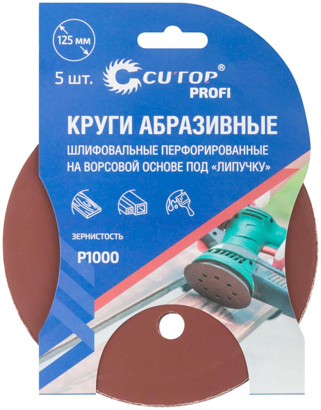 Набор кругов абразивных шлифовальных перфорированных на ворсовой основе под "липучку" Р1000 125мм (уп.5шт) Profi Cutop 85-629