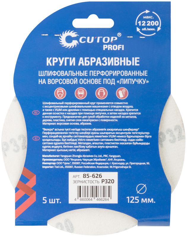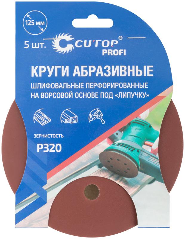 Набор кругов абразивных шлифовальных перфорированных на ворсовой основе под "липучку" Р320 125мм (уп.5шт) Profi Cutop 85-626
