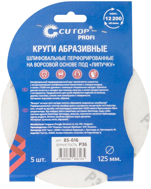 Набор кругов абразивных шлифовальных перфорированных на ворсовой основе под "липучку" Р36 125мм (уп.5шт) Profi Cutop 85-616