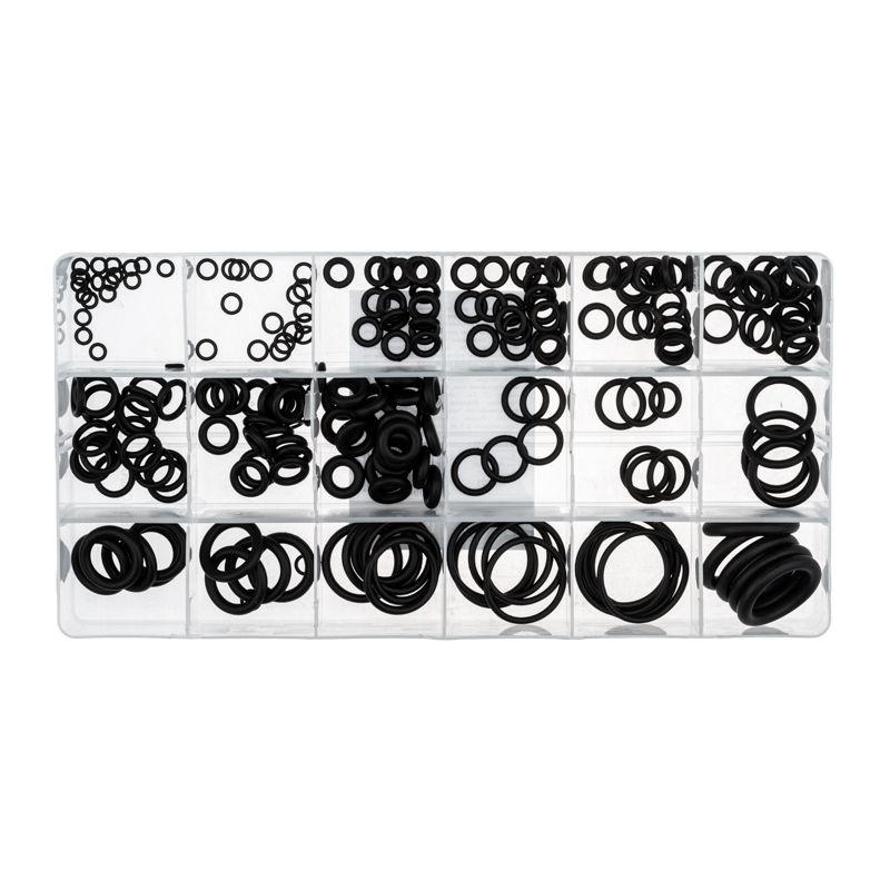 Набор состоит из 225 уплотнительных колец, которых хватит для выполнения множества задач. Поставляется в пластиковом органайзере, который помогает не только удобно хранить изделия, но и быстро находить крепеж нужного размера. Органайзер может в дальнейшем использоваться для хранения других крепежных элементов.
