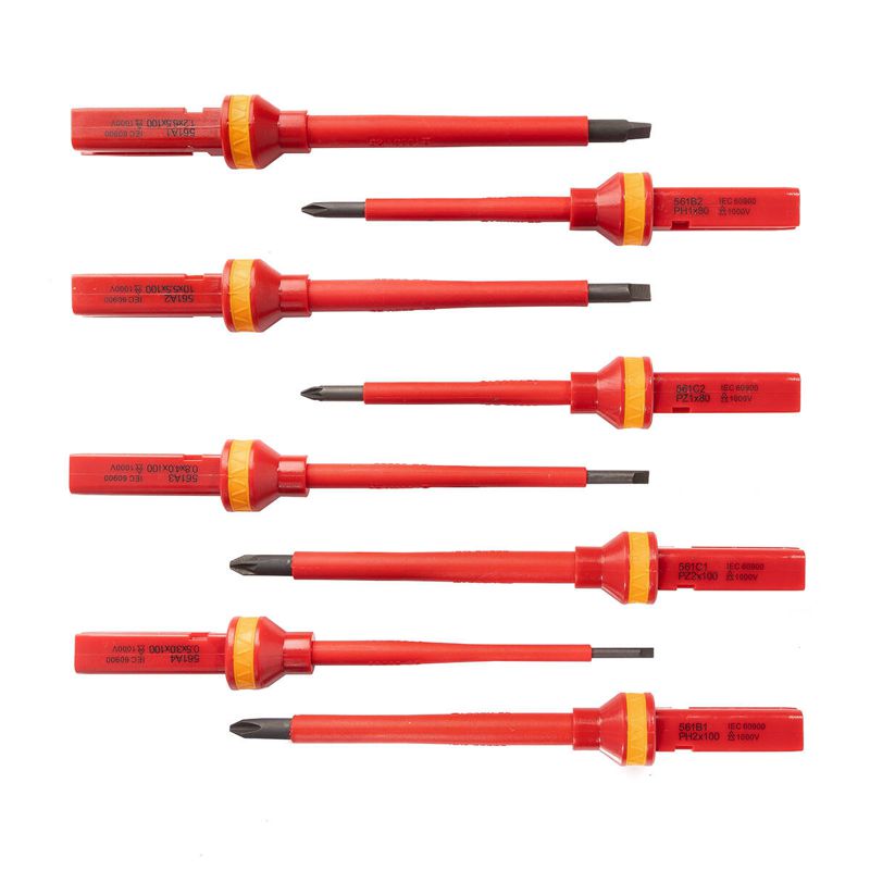 • отвертка с 8 сменными стержнями: SL 3.0х100, SL 4.0х100, SL 5.5х100, SL 6.5х100, РН 1х80, РН 2х100, PZ 1х80, PZ 2х100