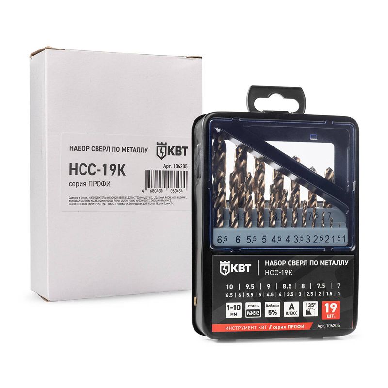 106205 | Набор сверл по металлу НСС-19К ПРОФИ КВТ