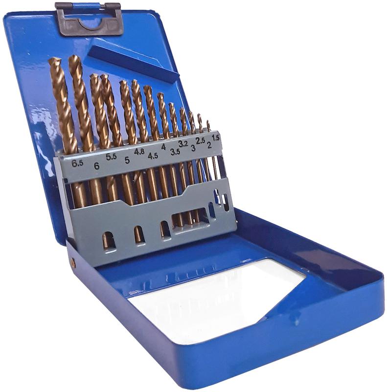 Набор сверл по металлу Profi 1.5-6.5мм (через 0.5мм + 32мм; 48мм) (13шт) с кобальтом 5ти-проц. в метал. коробке Cutop 48-601