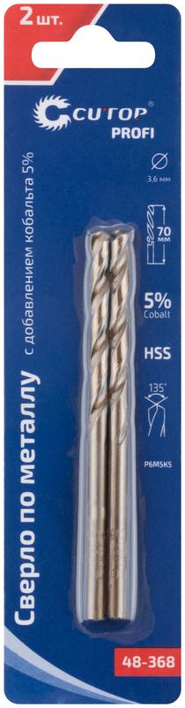 Набор сверл по металлу Profi 3.6х70мм с кобальтом 5ти-проц. (уп.2шт) Cutop 48-368