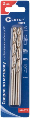 48-377 | Набор сверл по металлу Profi с кобальтом 5ти-проц. 5х86мм (уп.2шт) Cutop