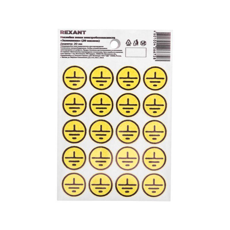 Наклейка знак электробезопасности «Заземление» d20мм (с хедером 20шт на листе) Rexant 56-0010-01
