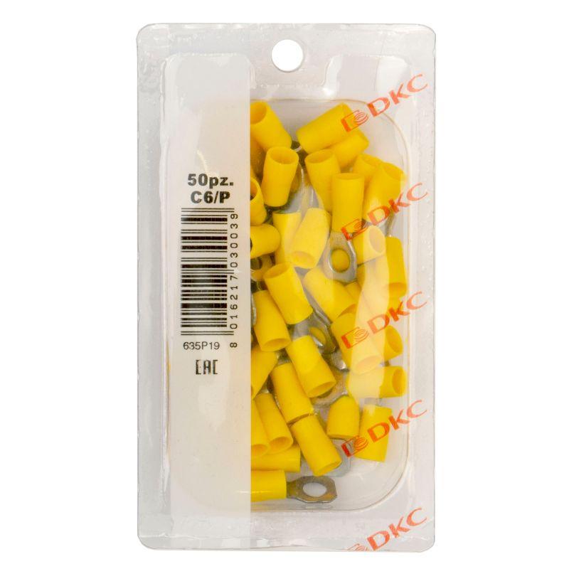 2C6P | Наконечник кольцевой изолированный 2.5-6кв.мм отв. d6.2мм желт. (уп.50шт) DKC