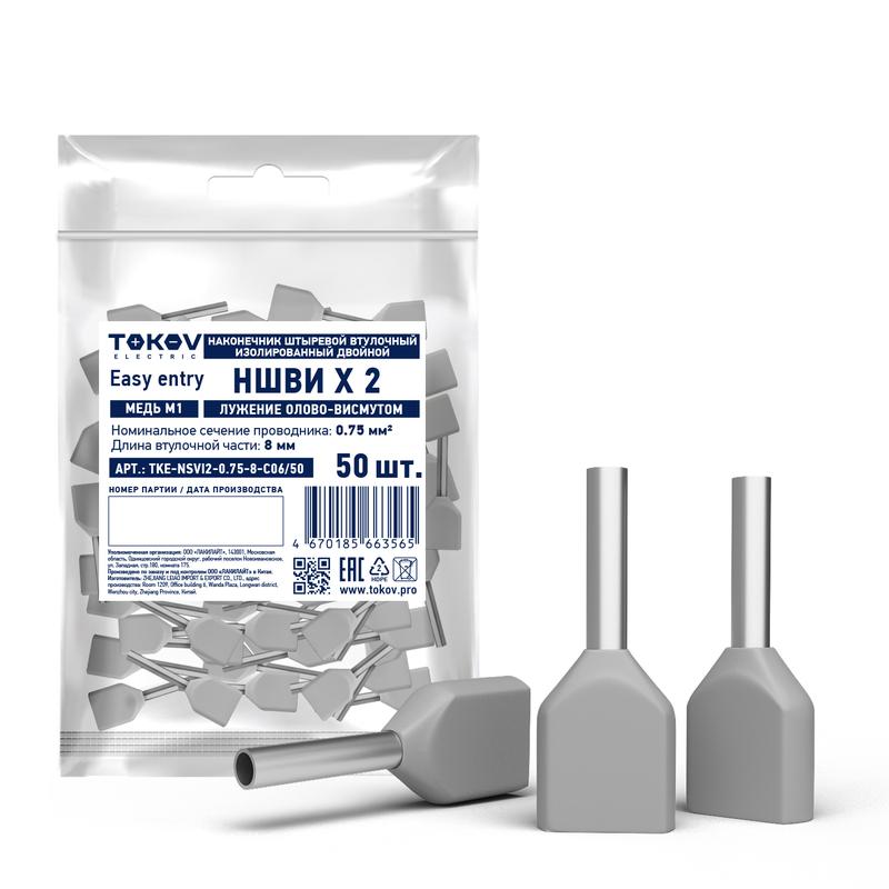 Наконечник штыревой втулочный изолированный двойной НШВИ(2) 0.75-8 TOKOV ELECTRIC TKE-NSVI2-0.75-8-C06/50