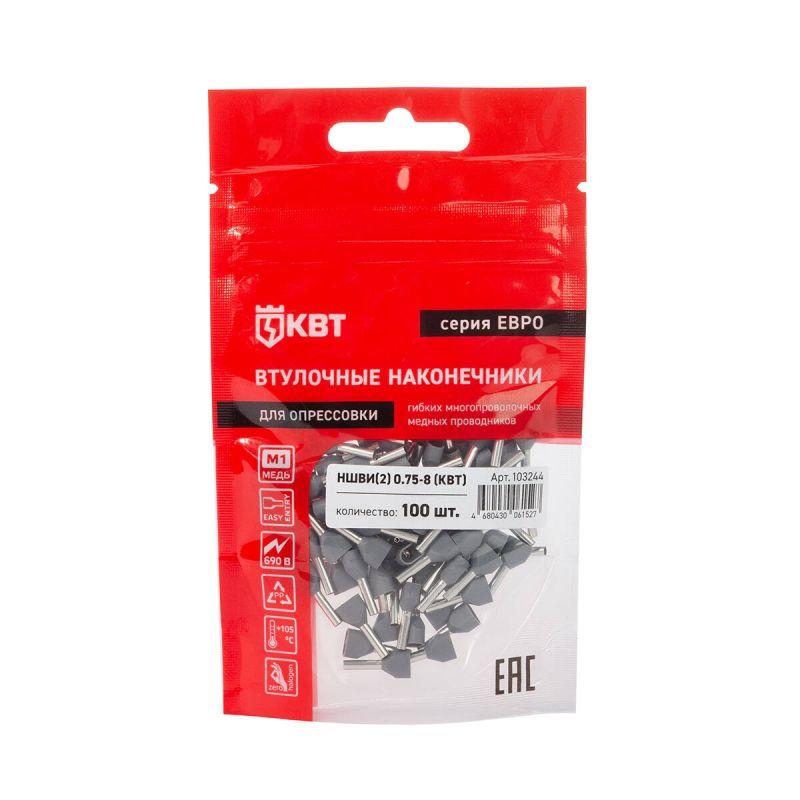 Наконечник штыревой втулочный изолированный НШВИ(2) 0.75-8 ЕВРО сер. КВТ 103244