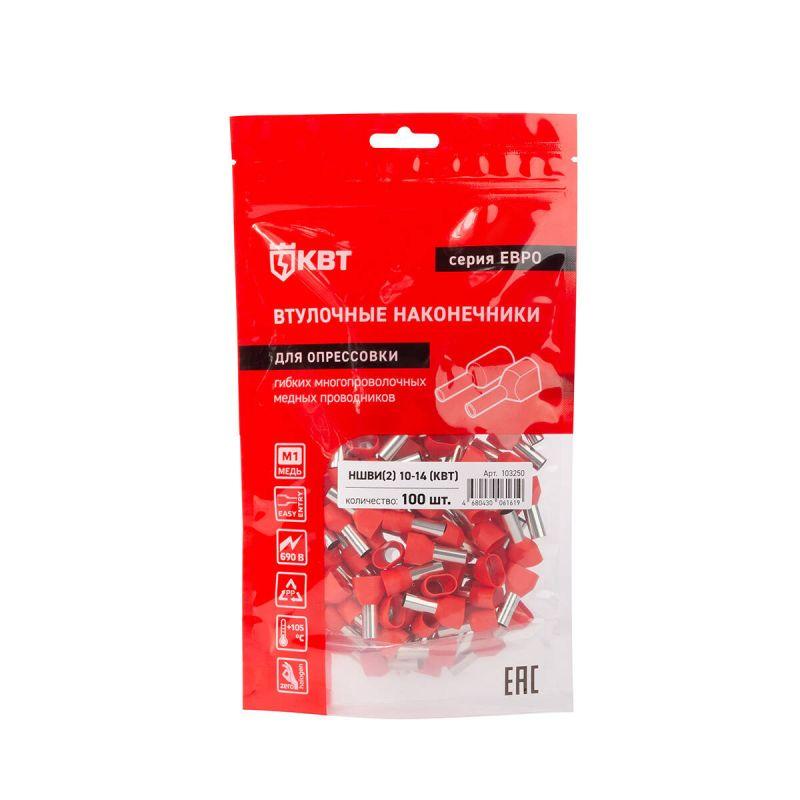 Наконечник штыревой втулочный изолированный НШВИ(2) 10-14 ЕВРО красн. КВТ 103250
