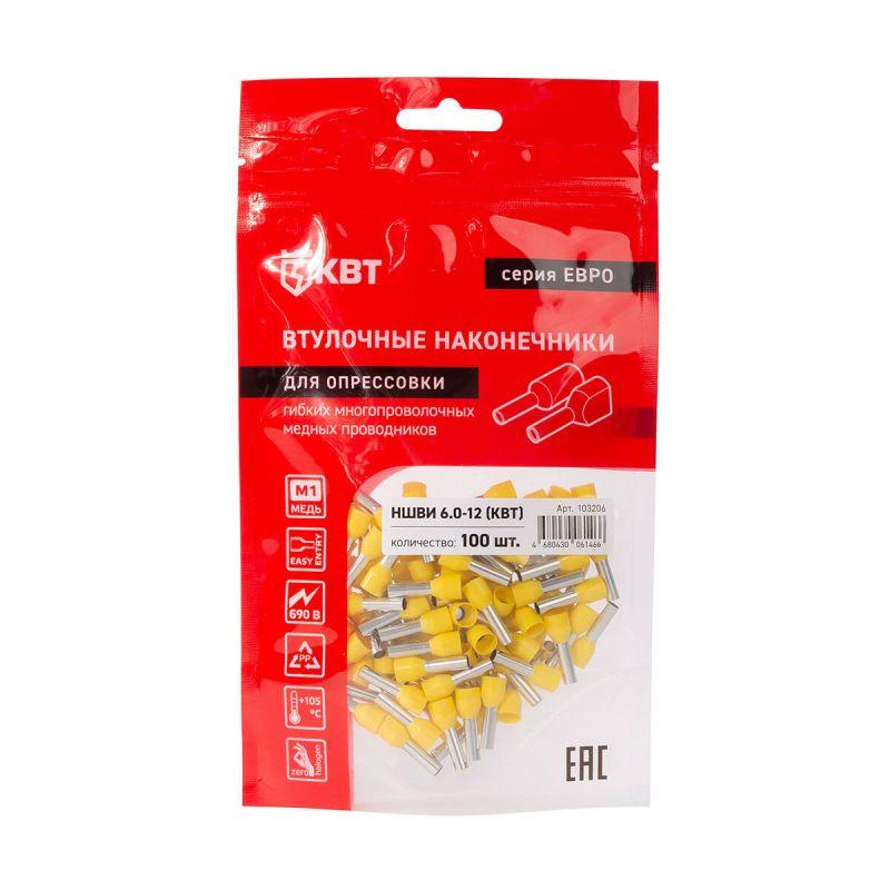 103206 | Наконечник штыревой втулочный изолированный НШВИ 6.0-12 ЕВРО желт. КВТ