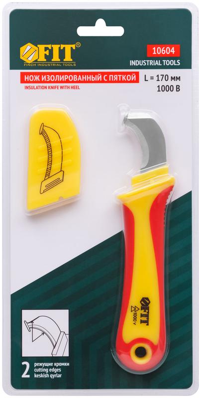 10604 | Нож изолированный 1000 В с пяткой нерж.сталь 170мм лезвие 37мм прорезин.ручка FIT