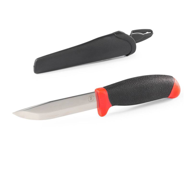 • Пластиковые ножны/чехол обеспечивают безопасное хранение и позволяют размещать нож на ремне