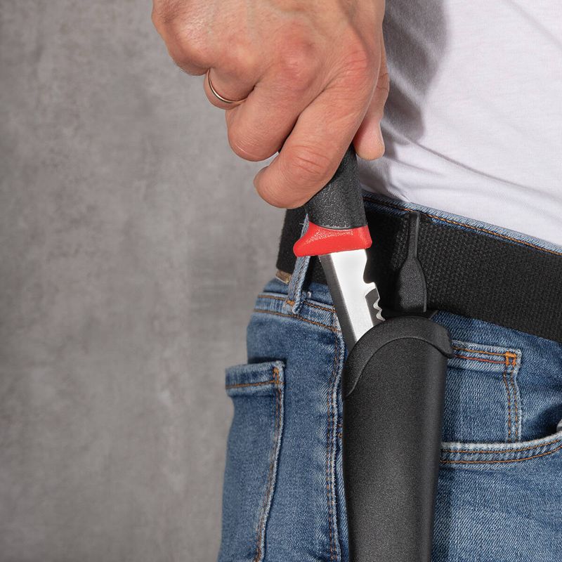 • Пластиковые ножны/чехол обеспечивают безопасное хранение и позволяют размещать нож на ремне