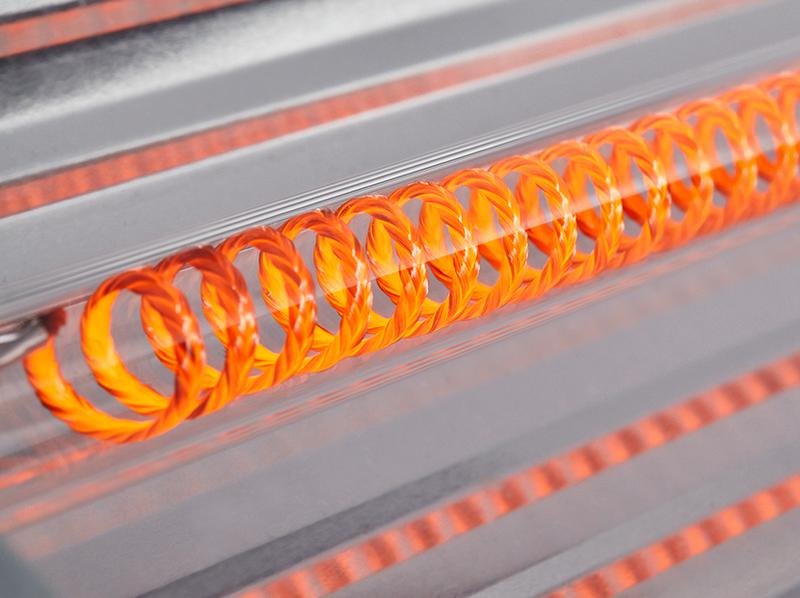 Мощные и долговечные карбоновые обогреватели с встроенным термостатом и пультом ДУ. Срок службы нагревательного элемента – около 15 000 часов, ~ в 3 раза дольше кварцевых. Номинальная мощность 2 кВт. Обогрев более мягкий и комфортный, отношение ИК излучения к общей тепловой мощности выше, чем у кварцевых, за счет эмиссионных свойств углеволокна. Быстрый разогрев и остывание, всего за 5-10 секунд лампа выходит в рабочий режим. Низкая яркость ламп – меньше затрат энергии на световое излучение, безопасны для глаз. Как и серия L, могут быть установлены на стену (поворотные кронштейны в комплекте) или на штатив (опция).