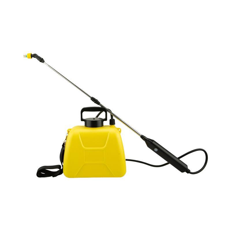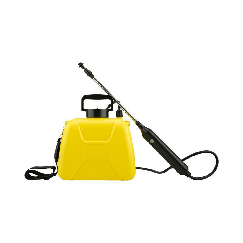 Опрыскиватель работает от встроенного аккумулятора, что устраняет необходимость постоянной ручной подкачки и снижает усталость при длительном использовании.