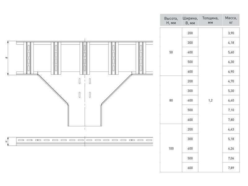 tlt80500 | Ответвитель T-образ. лестничный 80х500мм EKF