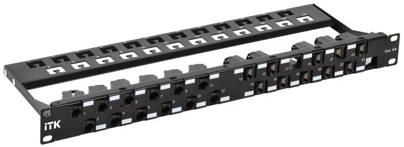 Патч-панель укомплектованная 1U кат.6A UTP 24 порта угловая ITK PP24-1UMU-C6A-D